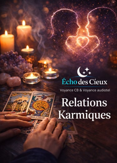 Sur Écho des cieux, nous explorons ces fils invisibles qui tissent la trame de nos destinées. Pourquoi certaines rencontres nous bouleversent-elles au point de changer le cours de notre existence ? Est-ce une bénédiction ou une épreuve nécessaire ? Plongeons ensemble dans les mystères du karma amoureux, avec un éclairage spirituel accessible grâce à la voyance CB et à la voyance audiotel, pour vous accompagner à chaque étape de votre cheminement intérieur.
