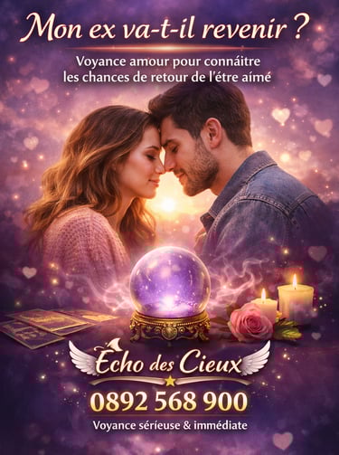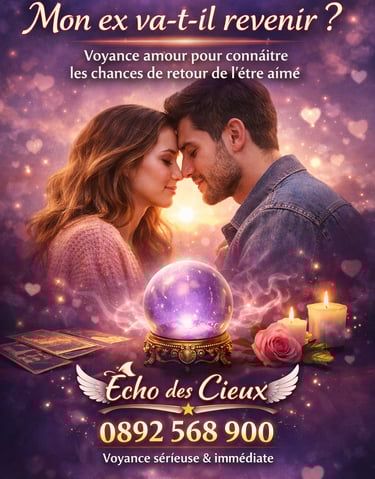 C’est la question la plus posée en voyance amour. Chaque situation est unique, mais la voyance peut vous aider à comprendre les intentions de votre ex, ses émotions actuelles et les possibilités de retour. Chez Écho des Cieux, nous vous guidons avec précision pour y voir plus clair.